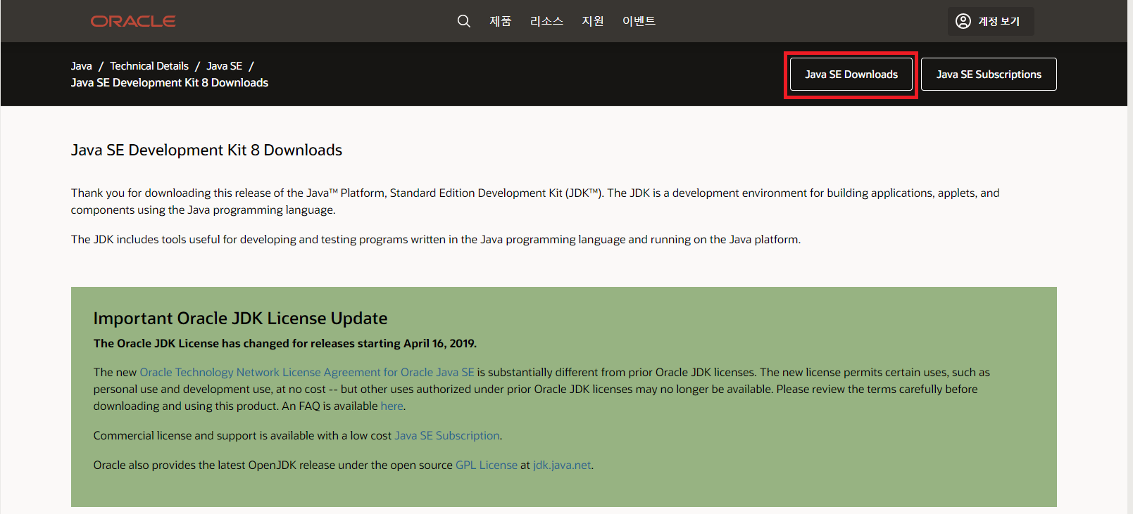 1. 오라클 홈페이지 접속하여 JDK 를 다운받는다
