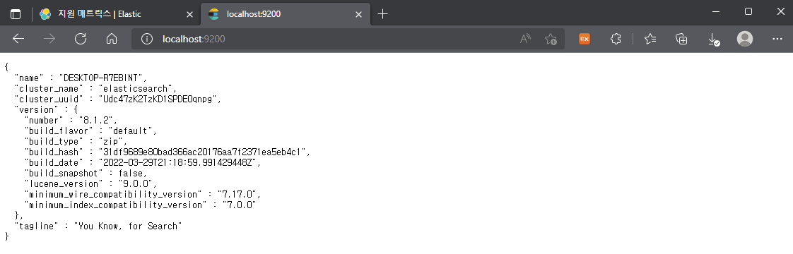 엘라스틱 서치 설치 완료!